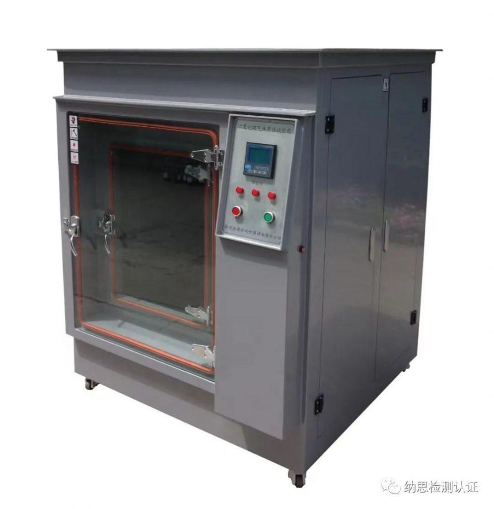测试目的和意义:大多数产品所使用的环境都是在大气中,而大多数的腐蚀发生在大气环境中,大气中含有氧气、湿度、温度变化和污染物等腐蚀成分和腐蚀因素。大气环境导致金属表面形成水膜,在大气中存在H2S、SO2、NO2、Cl2等有害气体溶入金属表面上所形成的水膜中,作为腐蚀性离子从而加速腐蚀进程。在一定的温度和湿度的环境下,利用H2S、SO2、NO2、Cl2等有害气体对材料或产品进行加速腐蚀,重现材料或产品在一定时间范围内所遭受的破坏程度。考核材料及防护层的抗气体腐蚀的能力,以及相似防护层的工艺质量比较,也可以用来考核某些产品的抗气体腐蚀的能力。